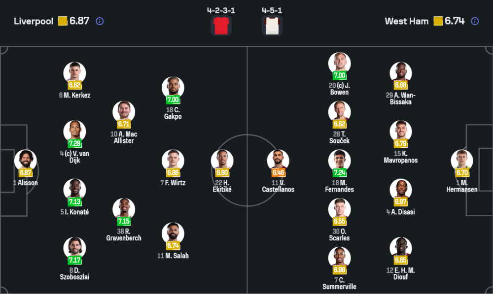 อย่างไรก็ตาม เกมนี้ไม่ง่าย เพราะเวสต์แฮมภายใต้ระบบ 4-2-3-1 สามารถแพ็กแนวรับถอยลงมาเป็นเกือบ 4-5-1 ปิดช่องว่างด้านข้าง ใช้ โบเว่น กับ ซัมเมอร์วิลล์ ช่วยไล่บอลและรอจังหวะโต้กลับเร็วใส่แบ็กสองฝั่งของเจ้าบ้าน จุดแอบน่าห่วงของหงส์แดงคือการยืนตำแหน่งเวลาเสียบอล ถ้า กราเวนเบิร์ช กับ แม็ก อัลลิสเตอร์ ถอยลงมาไม่ทัน อาจถูกสวนกลับเข้าใส่แนวรับที่ดันสูง
