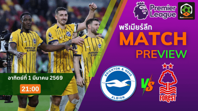พรีเมียร์ลีก อังกฤษ คืนวันอาทิตย์ที่ 1 มีนาคม 2569 เวลา 21:00 น. ที่เอเม็กซ์ สเตเดี้ยม เกมนี้บรรยากาศมันส์ตั้งแต่ยังไม่เขี่ยบอล เพราะเป็นการชนกันของทีมที่อันดับยังไม่ปลอดภัยเต็มร้อย ไบรท์ตันอันดับ 14 เปิดบ้านรับมือฟอเรสต์อันดับ 17 ที่กำลังต้องการแต้มแบบหายใจรดต้นคอ และเมื่อดูภาพรวมซีซั่น ทั้งคู่ยิงกันพอมีของแต่เสียประตูก็เยอะพอกัน ไบรท์ตันยิง 36 ลูก เสีย 34 ส่วนฟอเรสต์ยิง 25 ลูก เสีย 39 เกมนี้จึงไม่ใช่แค่เรื่องสามแต้ม แต่เป็นเรื่องจังหวะเอาตัวรอด และแรงกดดันจากสถานการณ์ในตารางที่พร้อมระเบิดได้ทุกนาที สำหรับแฟนบอลที่ไล่เช็ก ตารางบอลวันนี้ แล้ววงคู่นี้ไว้ บอกเลยว่ามีดราม่าแน่ แถมเรตราคาเปิดมาให้เจ้าถิ่นเป็นต่อแบบหายใจรดต้นคอ ราคาบอลวันนี้ ไบรท์ตันต่อ 0.25 ชนิดที่ถ้าเกมออกหน้าไหนก็มีสิทธิ์พลิกได้ทั้งนั้น