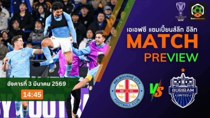 ภาพเกมมีสิทธิ์ตึงตั้งแต่ครึ่งแรก เมลเบิร์น ซิตี้ จะพยายามคุมจังหวะให้เกมนิ่ง ขณะที่บุรีรัมย์จะวัดใจด้วยการเร่งสปีดและเล่นงานพื้นที่ด้านข้าง หากทีมเยือนคมในจังหวะสุดท้าย มีลุ้นถึงแต้มกลับบ้านแบบเจ็บแสบ ส่วนทางฝั่งเจ้าบ้าน ถ้าคุมแดนกลางได้และจบสกอร์เฉียบ เกมก็อาจพลิกเป็นของเขาได้เหมือนกัน