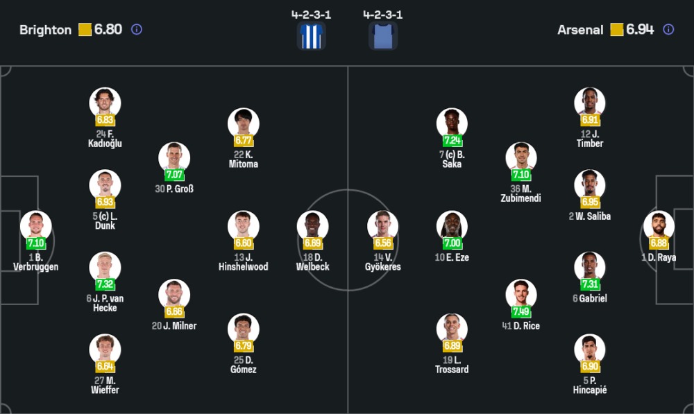เมื่อดูจากฟอร์ม ความสม่ำเสมอ และสถิติแนวรับ อาร์เซนอลมีภาษีบุกเก็บสามแต้มมากกว่า แต่ไบรท์ตันก็มีแรงฮึดในบ้านและเพิ่งชนะในลีกมา 2 เกมติด โอกาสที่เกมจะออกมาสูสีช่วงแรกมีสูง ก่อนที่ความละเอียดของทีมเยือนจะค่อย ๆ ทำงาน หากเกมแรก ๆ ไม่เสียประตูเร็ว มีสิทธิ์ที่สกอร์จะค่อย ๆ ขยับในครึ่งหลัง และรูปเกมจะตึงด้วยจังหวะฟาวล์พอสมควร (ผู้ตัดสินคริส คาวานาห์มีค่าเฉลี่ยใบเหลืองราว 3.68 ใบต่อเกม)