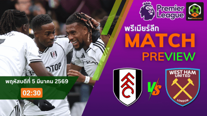 คืนวันพฤหัสบดีที่ 5 มีนาคม 2569 เวลา 02:30 น. เกมพรีเมียร์ลีกที่เหมือน “ดาร์บี้ลอนดอนฉบับย่อ” พร้อมระเบิดอารมณ์กันเต็มพิกัด ฟูแล่มอันดับ 9 เปิดบ้านรับ เวสต์แฮมอันดับ 18 ที่กำลังดิ้นรนหนีโซนล่างแบบห้ามพลาดแต้ม สนามคราเว่น ค็อตเทจคืนนี้รับรองเสียงเชียร์ดังลั่น เพราะเจ้าถิ่นกำลังมั่นใจจากผลงานระยะหลัง ส่วนทีมเยือนเพิ่งโดนยิงยับมา ความกดดันเลยถาโถมตั้งแต่ยังไม่เขี่ยบอล และที่สำคัญ ตารางบอลวันนี้ คู่นี้มีของ ทั้งจังหวะปะทะ ทั้งเกมสวนกลับ และเรื่องหน้าเสื่อที่ชวนลุ้นสุด ๆ โดยราคาเปิดมา ราคาบอลวันนี้ ฟูแล่มต่อ 0.5(-5) ชัดเจนว่าเจ้าบ้านถูกยกให้ “น่าเชียร์กว่า” ในภาพรวม