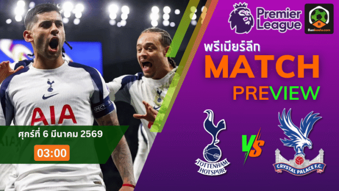 เกมพรีเมียร์ลีกกลางสัปดาห์ที่แฟนบอลห้ามกระพริบตา ท็อตแน่ม ฮ็อตสเปอร์ เปิดบ้านดวล คริสตัล พาเลซ คืนวันศุกร์ที่ 6 มีนาคม 2569 เวลา 03:00 น. ที่ท็อตแน่ม ฮ็อตสเปอร์ สเตเดี้ยม เกมนี้มันไม่ใช่แค่สามแต้ม แต่มันคือศักดิ์ศรีของทีมเมืองหลวงที่ต้องเดินชนกันแบบไม่มีถอย สเปอร์สกำลังอยู่ในช่วงที่ต้องพิสูจน์ว่าเปลี่ยนกุนซือแล้วจะเปลี่ยนชะตาได้จริงหรือไม่ ส่วนพาเลซเองก็มาแบบใจถึง เพราะภาพรวมซีซั่นดูแน่นกว่า เสียประตูน้อยกว่า คลีนชีตมากกว่า และเรตติ้งเฉลี่ยทีมก็เหนือกว่านิดๆด้วยซ้ำ นี่คือเกมที่เข้มตั้งแต่เสียงนกหวีดแรกจนวินาทีสุดท้ายสำหรับสายเช็ก ตารางบอลวันนี้ แล้วจิ้มเกมดึกให้มันส์ เกมนี้ราคาบอลเปิดมา สเปอร์ส ต่อ 0.25(-5) เป็นต่อแบบหืดจับ บอกเลยว่าตลาดมองว่าสู้กันได้ทุกหน้า และมีโอกาสไหลได้ตลอดตามทรงเกม