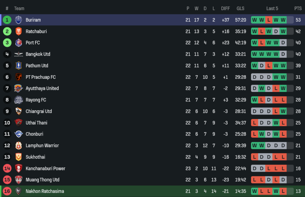 ผลงานช่วงหลังของโคราชยังแกว่งและออกไปทางเจ็บปวดมากกว่า ความพ่ายแพ้มาเรื่อย ๆ ทำให้ความมั่นใจหายเป็นช่วง ๆ แม้จะมีเกมที่เก็บชัยเหนือระยอง 2-1 แต่เมื่อเจอทีมที่โครงสร้างแน่นกว่า โคราชมักเสียรูปเกมง่าย เกมล่าสุด ๆ ยังมีทั้งแพ้ พีที ประจวบ 1-2 แพ้ การท่าเรือ 0-2 แพ้ ลำพูน 0-1 และแพ้ มหาสารคาม 0-2 จุดที่เห็นชัดคือยิงน้อยและโดนสวนแล้วเสียประตูง่าย ถ้าจะสู้บุรีรัมย์ ต้องเปลี่ยนเกมรับให้ “ไม่รั่ว” ก่อนเป็นอย่างแรก