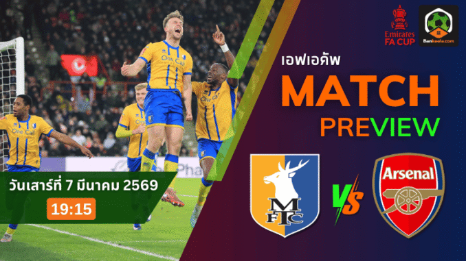 ศึกเอฟเอ คัพ อังกฤษ คืนนี้บอกเลยว่า “คนดูได้ลุ้น คนแทงได้เสียว” เมื่อแมนส์ฟิลด์จากลีก วัน เปิดบ้านที่วัน คอลล์ สเตเดี้ยม ดวลอาร์เซนอลทีมระดับหัวแถวพรีเมียร์ลีก คืนวันเสาร์ที่ 7 มีนาคม 2569 เวลา 19:15 น. เกมแบบน็อกเอาต์ไม่มีคำว่าแก้ตัว แค่พลาดจังหวะเดียวก็ร่วงได้ทั้งนั้น และด้วยชื่อชั้นที่ต่างกันสุดปลายตีน เส้นราคาเปิดมาแบบไม่เกรงใจเจ้าถิ่น ราคาบอลวันนี้ อาร์เซนอลต่อ 2.75(-10) บอกชัดว่าเขามาเอาเรื่อง มาเอาชัยแบบต้องยิงขาดให้ได้ แต่บอลถ้วยมันไม่เคยอ่อนโยนกับใคร โดยเฉพาะในคืนที่แฟนบอลเปิดดู ตารางบอลวันนี้ แล้วเห็นทีมใหญ่ต้องไปยืนในสนามทีมรองบ่อน…บรรยากาศแบบนี้แหละที่ทำให้เอฟเอ คัพ “มันส์” กว่าที่คิด