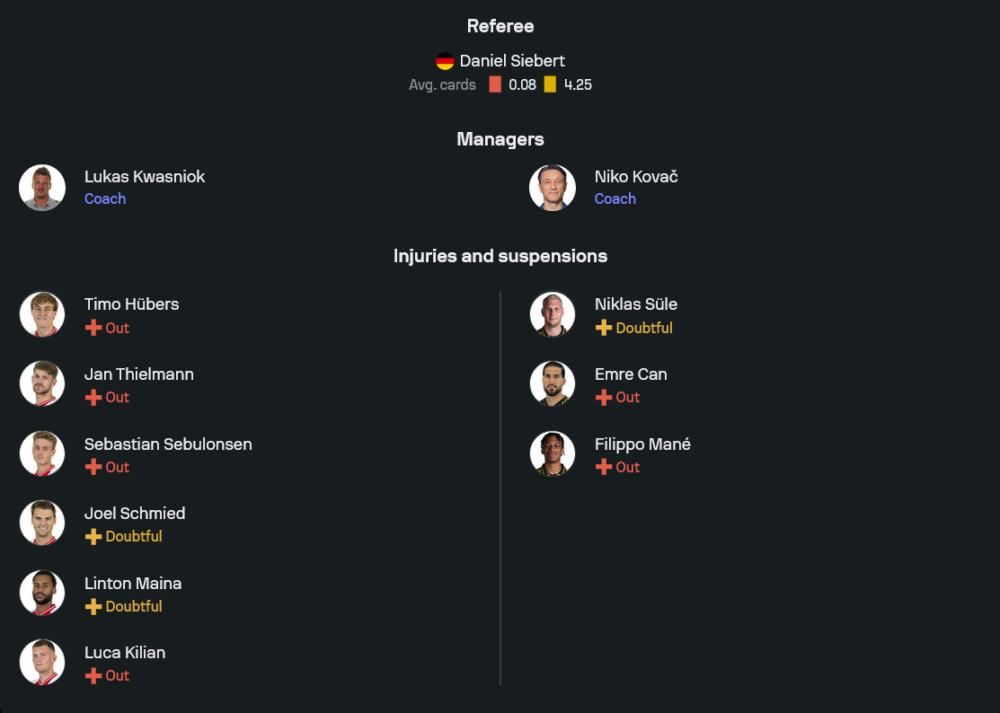 ฝั่งทีมเยือนของ นิโก้ โควัก ก็มีตัวเจ็บเหมือนกัน แต่โครงสร้างทีมยังดู “มีอะไหล่ทดแทน” มากกว่า คนที่ไม่พร้อมใช้งานมี เอ็มเร่ ชาน, ฟิลิปโป้ มาเน่, นิคลาส ซูเล่ และ คาร์นี่ย์ ชุควูเอเมก้า ทำให้ดอร์ทมุนด์น่าจะยืน 3-4-2-1 เหมือนเดิม โดยใช้ ฟาบิโอ ซิลวา เป็นหัวหอก และมี คาริม อเดเยมี่ กับ มักซิมิเลี่ยน ไบเออร์ คอยทำเกมด้านหลัง จุดน่ากลัวของเสือเหลืองคือวิงแบ็กที่เติมสูงได้ต่อเนื่อง บวกกับมิดฟิลด์อย่าง ซาบิตเซอร์ ที่คุมจังหวะและยิงไกลได้ ทำให้เกมนี้ดอร์ทมุนด์มีทางเลือกในการเข้าทำมากกว่าชัดเจน