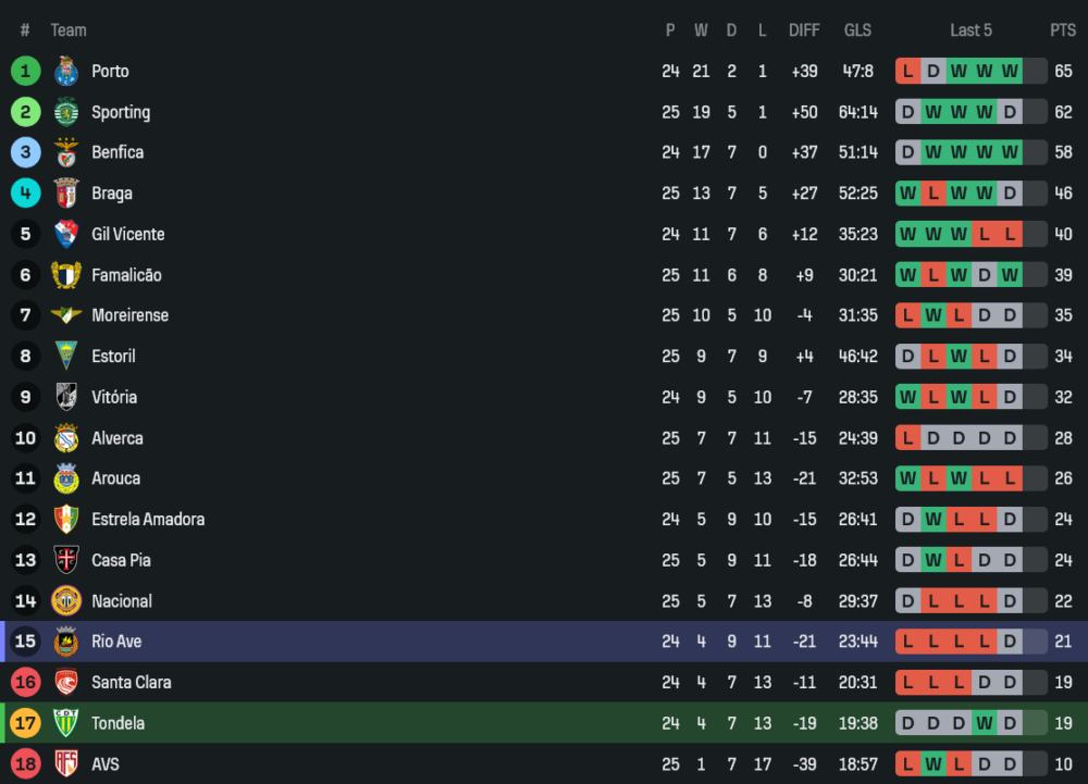 ช่วง 5 นัดหลังในลีกของทอนเดล่า หน้าตาเหมือนทีมที่ “แพ้ยากแต่ชนะก็ยาก” เสมอซานตา คลาร่า 2-2, ชนะเอสเตรล่า 2-0, เสมออัลแวร์ก้า 1-1, เสมอเอสโตริล 2-2 และเสมอเบนฟิก้า 0-0 เกมเหล่านี้สะท้อนชัดว่าแนวรับพอมีระบบ ยืนโซนดี ไม่หลุดง่าย แถมยิงได้ต่อเนื่องในหลายเกม แต่ปัญหาคือเกมปิดบัญชีไม่เด็ดขาดพอ โดยเฉพาะเกมในบ้านทั้งฤดูกาลที่ผลงานยังไม่น่าประทับใจนัก (12 นัด ชนะ 1 เสมอ 5 แพ้ 6) คืนนี้ถ้าจะ “เอาจริง” ต้องเปลี่ยนโอกาสครึ่งจังหวะให้เป็นประตูให้ได้