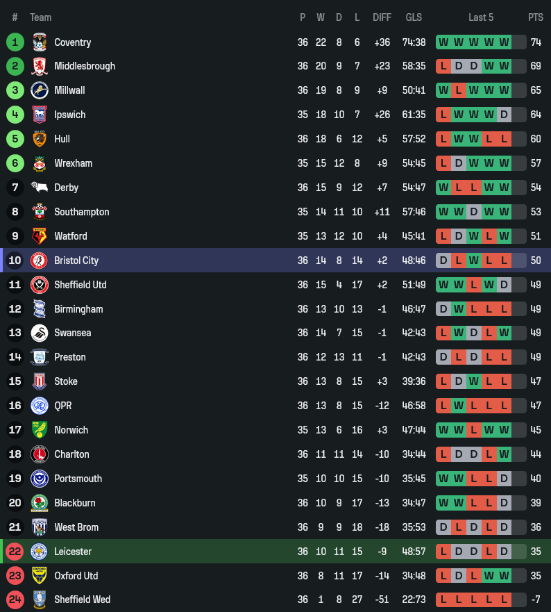 ศึกแชมเปี้ยนชิพ อังกฤษ คืนวันพุธที่ 11 มีนาคม 2569 เวลา 02:45 น. เลสเตอร์ ซิตี้ ทีมอันดับ 22 เปิดสนามคิงส์ พาวเวอร์ สเตเดี้ยม รับการมาเยือนของ บริสตอล ซิตี้ ทีมอันดับ 10 เกมนี้มีความหมายหนักหน่วงต่อเจ้าถิ่นแบบเต็มๆ เพราะทุกแต้มคือความหวังในการดิ้นหนีโซนอันตราย ขณะที่ทีมเยือนเองก็ยังต้องการรักษาจังหวะลุ้นอันดับให้ดีที่สุด เมื่อดูจาก ตารางบอลวันนี้ แล้ว นี่คืออีกคู่ที่ความกดดันสูงและมีโอกาสออกได้ทุกหน้า