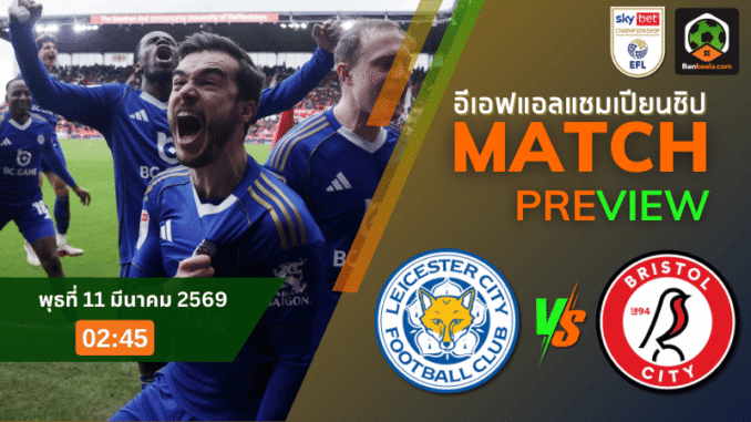 ศึกแชมเปี้ยนชิพ อังกฤษ คืนวันพุธที่ 11 มีนาคม 2569 เวลา 02:45 น. เลสเตอร์ ซิตี้ ทีมอันดับ 22 เปิดสนามคิงส์ พาวเวอร์ สเตเดี้ยม รับการมาเยือนของ บริสตอล ซิตี้ ทีมอันดับ 10 เกมนี้มีความหมายหนักหน่วงต่อเจ้าถิ่นแบบเต็มๆ เพราะทุกแต้มคือความหวังในการดิ้นหนีโซนอันตราย ขณะที่ทีมเยือนเองก็ยังต้องการรักษาจังหวะลุ้นอันดับให้ดีที่สุด เมื่อดูจาก ตารางบอลวันนี้ แล้ว นี่คืออีกคู่ที่ความกดดันสูงและมีโอกาสออกได้ทุกหน้า