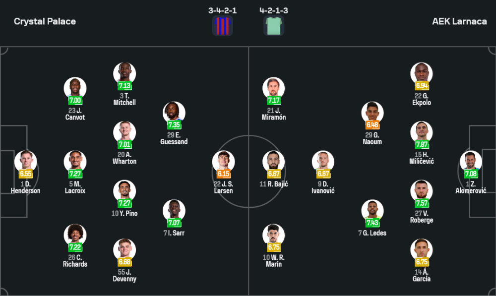 เออีเค ลาร์นาก้า ชนะ 2 เสมอ 1 แพ้ 2 จาก 5 นัดหลังสุด เกมล่าสุดอัดอาคริตาส ชโลราก้า 3-0 ก็จริง แต่ก่อนหน้านั้นมีสะดุดให้เห็นทั้งแพ้โอโมเนีย อาราดิปปู และแพ้อพอลลอน ลิมาสซอล ทำให้ภาพรวมยังไม่นิ่งมากนัก อย่างไรก็ตาม ผลงานในรายการนี้ถือว่าไม่ธรรมดา เพราะพวกเขาแพ้ยากและเคยบุกชนะพาเลซมาแล้ว