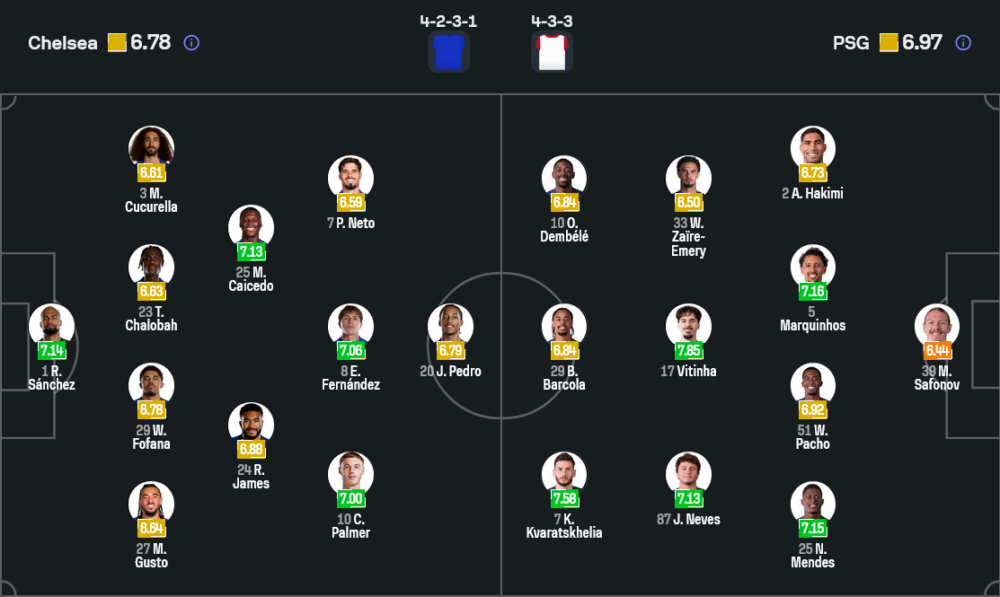 เปแอสเชของ หลุยส์ เอ็นริเก้ ใช้ระบบ 4-3-3 ที่ดุดันและลงตัวกว่าอย่างชัดเจน แกนหลักพร้อมหน้าทั้ง อัคราฟ ฮาคิมี่, มาร์กินญอส, วิตินญ่า, ชูเอา เนเวส, อุสมาน เดมเบเล่, แบรดลีย์ บาร์โคล่า และ ควิชา ควารัตสเคเลีย แม้จะมีตัวเจ็บบางรายอย่าง ฟาเบียน รุยซ์ แต่โครงสร้างหลักยังแน่นเหมือนเดิม จุดแข็งสำคัญคือการครองบอลที่เหนือกว่าและเกมรุกที่เฉียบคม ยิงเฉลี่ยในรายการนี้ได้ถึง 2.8 ประตูต่อเกม จึงเป็นทีมที่พร้อมลงโทษคู่แข่งทันทีถ้าได้พื้นที่