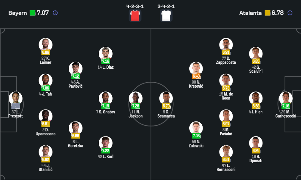 ฝั่งของ ราฟฟาเอเล่ ปัลลาดิโน่ ก็มีปัญหาไม่น้อยเช่นกัน เมื่อจะหมดสิทธิ์ใช้งาน จอร์โจ้ สกัลวินี่ และ ยูนุส มูซาห์ จากโทษแบน คาดว่าเกมนี้จะปรับมาใช้ระบบ 3-4-2-1 เพื่อเพิ่มความยืดหยุ่นในการรับและสวนกลับ โดยมี ลาซาร์ ซามาร์ดซิช กับ นิโคลา ซาเลฟสกี้ คอยปั้นเกมสนับสนุน นิโคล่า เคิร์สโตวิช ในแดนหน้า จุดสำคัญของอตาลันต้าคือพวกเขาต้องเล่นอย่างกล้าแต่ต้องไม่เปิดพื้นที่มากเกินไป เพราะหากพลาดอีกครั้ง บาเยิร์นมีศักยภาพพอจะลงโทษได้ทันที