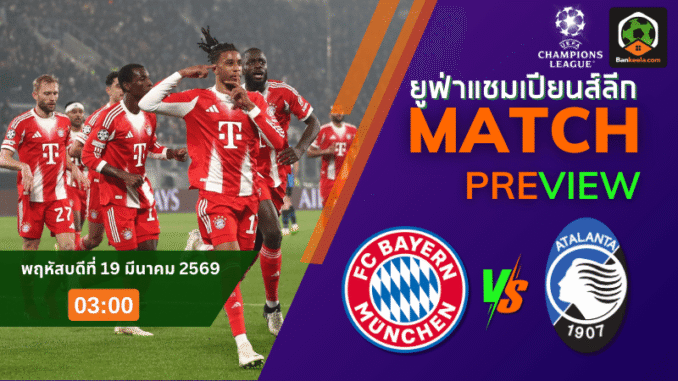 คืนวันพฤหัสบดีที่ 19 มีนาคม 2569 เวลา 03:00 น. ศึก ยูฟ่า แชมเปี้ยนส์ ลีก รอบ 16 ทีมสุดท้าย นัดสอง เดินหน้าสู่เกมที่กดดันสุดขีด เมื่อ บาเยิร์น มิวนิค กลับมาเล่นในอัลลิอันซ์ อารีน่า รับการมาเยือนของอตาลันต้า หลังเลกแรกเสือใต้บุกถล่มมาแบบยับเยิน 6-1 ทำให้สถานการณ์ของคู่นี้แทบเอียงขาดตั้งแต่ยังไม่เริ่มเขี่ยบอล เกมนี้จึงเป็นทั้งบททดสอบของเจ้าถิ่นในการรักษามาตรฐาน และเป็นภารกิจเรียกศรัทธาของทีมเยือนที่ไม่มีทางเลือกอื่นนอกจากสู้ให้สุด สำหรับแฟนบอลที่กำลังไล่เช็ก ตารางบอลวันนี้ คู่นี้ยังเป็นแมตช์ที่น่าจับตา เพราะมีทั้งแรงกดดัน ความต่างของคุณภาพทีม และจังหวะเกมที่พร้อมเดือดได้ทุกนาที ขณะที่ ราคาบอลวันนี้ เปิดให้บาเยิร์นต่อ 1.75 สะท้อนชัดว่าภาพรวมยังอยู่ในมือของทีมดังจากเยอรมนี