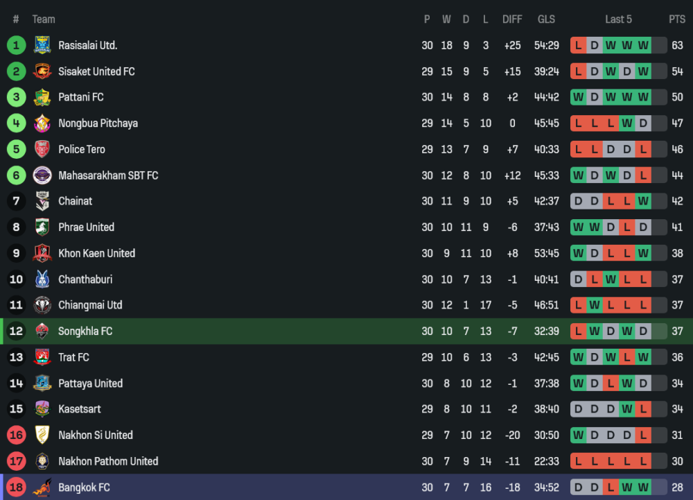 ฟอร์มล่าสุดของ สงขลา เอฟซี