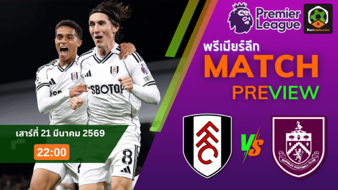 ศึก พรีเมียร์ลีก อังกฤษ คืนวันเสาร์ที่ 21 มีนาคม 2569 เวลา 22:00 น. ฟูแล่ม อันดับ 11 เปิดบ้านรับมือเบิร์นลีย์ อันดับ 19 ที่กำลังหนีตายเต็มตัว เกมนี้จึงมีความหมายมากทั้งสองฝั่ง เจ้าถิ่นหวังคืนฟอร์มหลังผลงานช่วงหลังยังไม่นิ่ง ส่วนทีมเยือนต้องการทุกแต้มเพื่อยื้อความหวังอยู่รอดในลีก สนามคราเว่น ค็อตเทจน่าจะเดือดตั้งแต่นาทีแรก และถือเป็นอีกคู่ใน ตารางบอลวันนี้ ที่แฟนบอลต้องจับตา โดยราคาบอลเปิดให้ฟูแล่มต่อ 1.0(-10) แต่เมื่อดูภาพรวมแล้ว เกมนี้อาจไม่ง่ายสำหรับเจ้าบ้านอย่างที่เรตบอกไว้