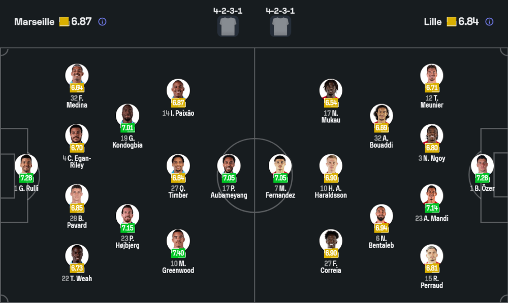 มาร์กเซยน่าจะยึดแผน 4-2-3-1 ต่อไป โดยมี รูลลี่ เฝ้าเสา แนวรับวาง เวอาห์, ปาวาร์, อีกาน ไรลีย์ และเมดิน่า คู่กลางใช้ ฮอยเบิร์ก กับ ก็องด็อกเบีย คุมเกม ขณะที่แนวรุกฝากความหวังไว้ที่ กรีนวูด, เอ็นวาเนรี่, ปาเชา และกุยรี่ในตำแหน่งหน้าเป้า จุดเด่นคือเกมรุกในบ้านที่เริ่มต่อกันติดและสร้างแรงกดดันได้ต่อเนื่อง แม้ยังต้องเช็กความฟิตของนายิฟ อาเกิร์ด และเลโอนาร์โด บาแลร์ดี้ แต่โครงสร้างหลักยังถือว่าพร้อมลุยเต็มที่