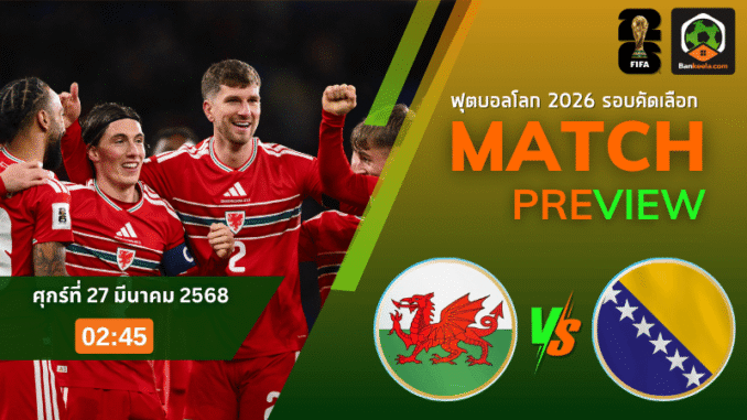 คู่นี้อาจไม่ใช่เกมที่ยิงกันกระจาย แต่เป็นแมตช์ที่มีความเข้มข้นทั้งแท็กติกและแรงกดดัน เวลส์ต้องการใช้เกมในบ้านปิดจ๊อบให้ได้ ส่วนบอสเนียก็พร้อมยื้อและหาจังหวะลงโทษทุกเมื่อ ใครกำลังรอคู่นี้อยู่ ติดตามกันให้ดี เพราะมีสิทธิ์เป็นเกมที่ตัดสินกันด้วยรายละเอียดเล็กๆ และอย่าพลาดเช็ก ผลบอลสด หลังจบ 90 นาที ว่ามังกรแดงจะเช็กบิลได้หรือไม่
