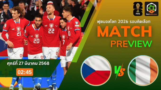 ฟุตบอลโลก 2026 รอบคัดเลือก โซนยุโรป รอบเพลย์ออฟ คืนวันศุกร์ที่ 27 มีนาคม 2569 เวลา 02:45 น. สาธารณรัฐเช็ก เปิดบ้านรับมือ ไอร์แลนด์ ในเกมที่ไม่มีคำว่าถอยให้ทั้งสองฝ่าย เพราะผู้ชนะจะได้ไปต่อบนเส้นทางลุ้นตั๋วสู่เวิลด์คัพทันที เกมนี้จึงเข้มข้นตั้งแต่ยังไม่เริ่มเตะ และสำหรับแฟนบอลที่เช็ก ตารางบอลวันนี้ อยู่แล้ว นี่คือคู่ที่ต้องจับตาแบบห้ามละสายตา
