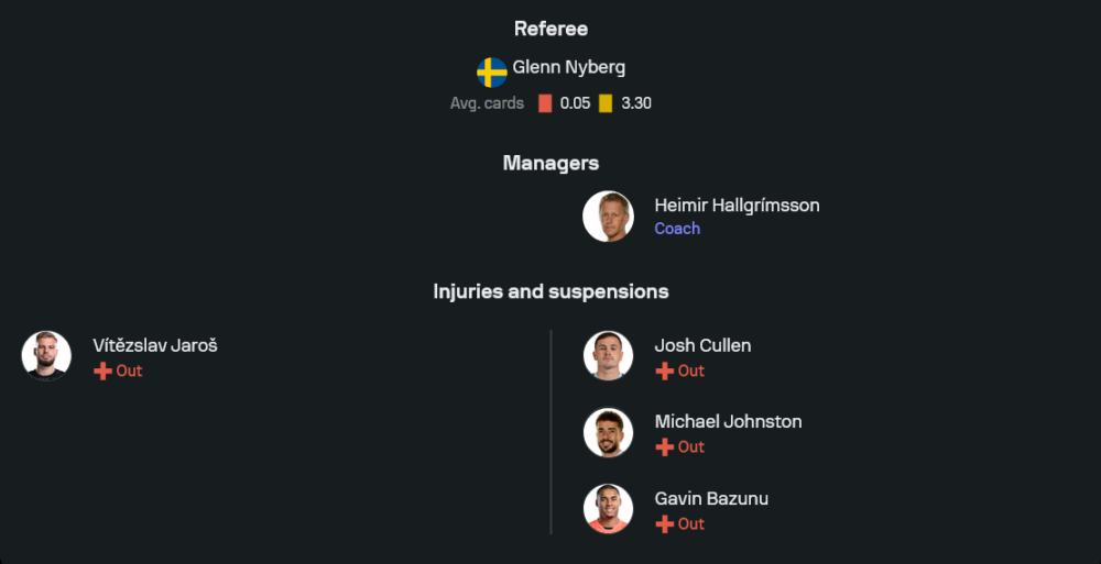 ทีมเยือนมีแนวโน้มจัดทัพในระบบ 3-4-2-1 โดยใช้ ควีวีน เคลเลเฮอร์ ยืนด่านสุดท้าย แนวรับนำโดย นาธาน คอลลินส์, เจค โอไบรอัน และ ดารา โอเชีย ส่วนวิงแบ็กสองฝั่งมี เชมัส โคลแมน กับ ไรอัน แมนนิง ขยับขึ้นลง ขณะที่เกมรุกหวังพึ่งความร้อนแรงของ ทรอย แพร์รอตต์ เป็นตัวจบสกอร์