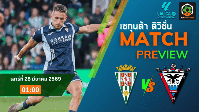 ศึกเซกุนด้า ดิบิซิออน สเปน คืนวันเสาร์ที่ 28 มีนาคม 2569 เวลา 01:00 น. กอร์โดบา อันดับ 12 เปิดรังเอสตาดิโอ นูเอโบ อาร์คานเกล รับมือ มิรันเดส อันดับ 22 ในเกมที่มีแรงกดดันมหาศาลทั้งสองฝั่ง โดยเฉพาะเจ้าถิ่นที่แพ้รวดมา 5 นัดติดจนสถานการณ์เริ่มน่าห่วง ส่วนทีมเยือนแม้เพิ่งปลดล็อกชัยได้ในนัดล่าสุด แต่ภาพรวมยังไว้ใจไม่ได้ โดยเฉพาะเวลาออกนอกบ้าน สำหรับแฟนบอลที่กำลังเช็ก ตารางบอลวันนี้ นี่คืออีกคู่ที่น่าจับตาไม่น้อย เพราะราคาบอลเปิดมาให้กอร์โดบาต่อ 0.75 สะท้อนว่าบ้านยังถูกมองว่ามีภาษีเหนือกว่าเล็กน้อย
