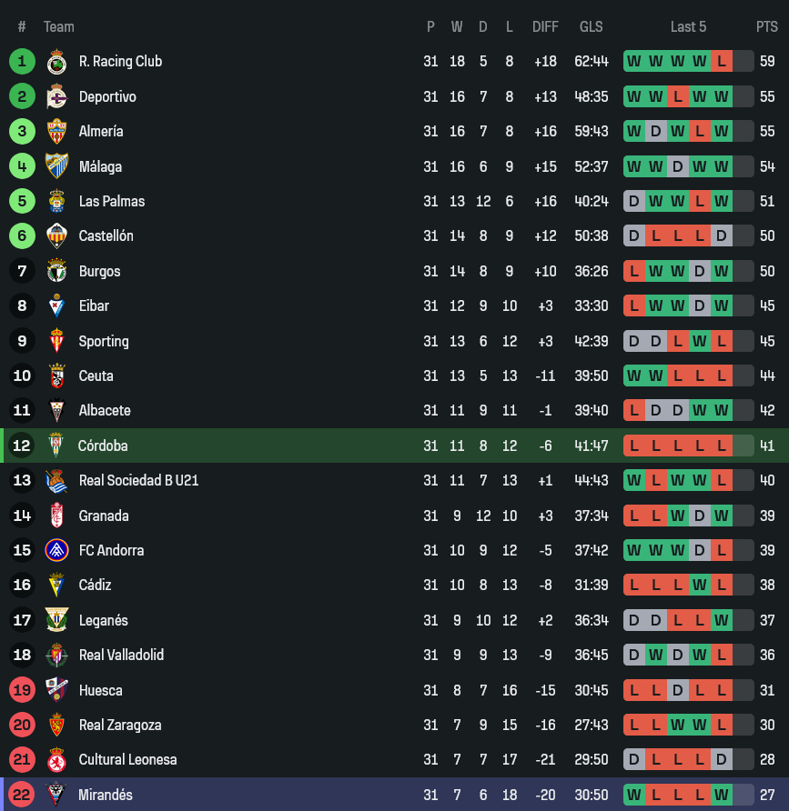 ผลงานช่วงหลังของกอร์โดบาเข้าขั้นน่าเป็นห่วง แพ้รวด 5 นัดติด เสียประตูรวม 17 ลูก เกมรับมีปัญหาชัดเจนและเสียทรงง่าย โดยเฉพาะจังหวะป้องกันในพื้นที่สุดท้าย แม้บางนัดแนวรุกยังพอสร้างโอกาสได้ แต่ยังไม่เฉียบคมพอจะพลิกสถานการณ์กลับมา