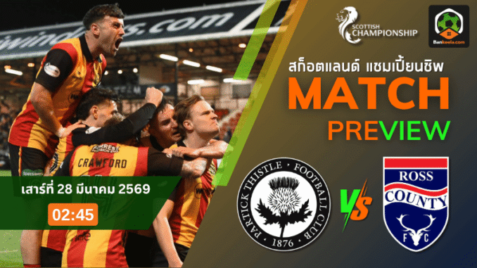 ศึกสกอตติช แชมเปี้ยนชิพ คืนวันเสาร์ที่ 28 มีนาคม 2569 เวลา 02:45 น. เป็นอีกคู่ใน ตารางบอลวันนี้ ที่น่าจับตา เมื่อ แพทริค ธิสเทิ่ล อันดับ 2 เตรียมเปิดรังเฟอร์ฮิลล์ สเตเดี้ยม รับการมาเยือนของ รอสส์ เคาน์ตี้ อันดับ 9 โดยเจ้าถิ่นกำลังอยู่ในช่วงมั่นใจ ไม่แพ้ใครมา 3 นัดติด ส่วนทีมเยือนฟอร์มแผ่ว ไม่ชนะมา 4 เกมรวด ราคาบอลเปิดให้แพทริค ธิสเทิ่ล ต่อ 0.75 ซึ่งมองจากฟอร์มในบ้านและความแน่นอนของเกมแล้ว ยังถือว่าเจ้าถิ่นดูเหนือกว่าชัดเจนพอตัว