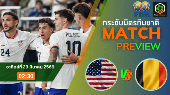 ศึกกระชับมิตรทีมชาติคืนวันอาทิตย์ที่ 29 มีนาคม 2569 เวลา 02:30 น. สหรัฐอเมริกา เตรียมเปิดสนามเมอร์เซเดส เบนซ์ รับมือ เบลเยียม ในเกมที่แม้จะเป็นแมตช์อุ่นเครื่อง แต่ความเดือดไม่เบาแน่นอน เพราะทั้งสองทีมต่างต้องการทดสอบระบบและเรียกความมั่นใจก่อนลุยโปรแกรมจริงต่อไปใน ตารางบอลวันนี้ โดยเรตราคาเปิดให้ เบลเยียม บุกมาต่อ ปป สะท้อนชัดว่าฝั่งยุโรปยังถูกมองว่าน่ากลัวกว่าเล็กน้อย แม้เจ้าถิ่นจะอยู่ในช่วงฟอร์มแรงก็ตาม