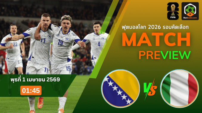 ศึกฟุตบอลโลก รอบคัดเลือก โซนยุโรป คืนวันพุธที่ 1 มีนาคม 2569 เวลา 01:45 น. ที่สนามบิลิโน่ โพลเย่ บอสเนียและเฮอร์เซโกวีนาเปิดบ้านรับมืออิตาลี เกมนี้มีความหมายอย่างมากต่อเส้นทางลุ้นตั๋วรอบสุดท้าย โดยเฉพาะฝั่งอิตาลีที่ชื่อชั้นและคุณภาพทีมดูเหนือกว่าอย่างชัดเจน ขณะที่เจ้าถิ่นหวังใช้เสียงเชียร์ในบ้านสู้เต็มที่ หากมองภาพรวมทั้งขุมกำลัง ประสบการณ์ และมาตรฐานการเล่น อิตาลียังดูน่าเชื่อถือกว่า และถือเป็นอีกคู่สำคัญใน ตารางบอลวันนี้ ส่วน ราคาบอลวันนี้ เปิดให้อิตาลีต่อ 1 ลูก สะท้อนให้เห็นว่าทีมเยือนถูกมองว่าเหนือกว่าพอสมควร
