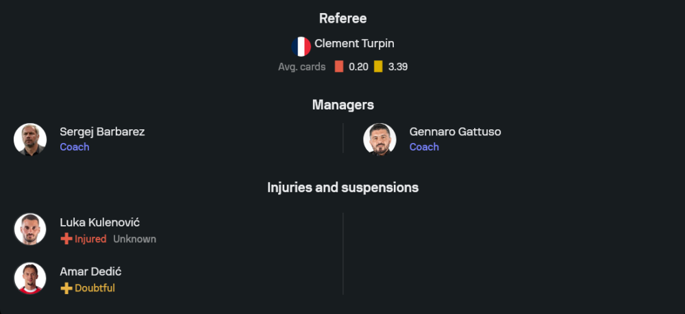 เซอร์เกย์ บาร์บาเรซ น่าจะยังใช้แกนหลักชุดเดิมในระบบ 4-4-2 หลังพาทีมผ่านรอบก่อนมาแบบเหนื่อยพอตัว ความหวังในเกมรุกยังอยู่ที่ เอดิน เชโก้ ที่แม้อายุแตะ 40 ปีแล้วแต่ยังเป็นตัวจบสกอร์สำคัญ โดยมี เอร์เมดิน เดมิโรวิช ยืนเป็นคู่ล่าตาข่าย ส่วน เคริม อลายเบโกวิช ปีกดาวรุ่งมีลุ้นสอดแทรกลงตัวจริง ขณะที่แนวรับยังพึ่งตัวหลักอย่าง นิโคล่า คาทิช, ทาริก มูฮาเรโมวิช และ เซอัด โคลาซินัค เหมือนเดิม แม้ทีมจะมีปัญหาเรื่องความสมบูรณ์ของบางรายอยู่บ้างก็ตาม