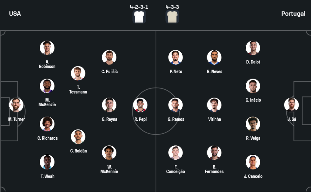 ฝั่งโปรตุเกสของ โรเบร์โต้ มาร์ติเนซ แม้ไม่มี คริสเตียโน่ โรนัลโด้, ดิโอโก้ คอสต้า และ รูเบน ดิอาส แต่ภาพรวมยังดูแข็งแรงกว่าเจ้าถิ่นอยู่ดี เพราะยังมีแกนหลักอย่าง บรูโน่ แฟร์นานเดส, เปโดร เนโต้, รูเบน เนเวส, วิตินญ่า และ กอนซาโล่ รามอส พร้อมลงสนาม ทีมเยือนมีแนวโน้มยืนระบบ 4-3-3 ที่ช่วยให้เกมแดนกลางไหลลื่นและขึ้นเกมด้านข้างได้อันตราย จุดแข็งของโปรตุเกสยังอยู่ที่การครองบอลและคุณภาพเฉพาะตัวของแนวรุก ซึ่งพร้อมเล่นงานแนวรับสหรัฐได้ตลอดเวลา