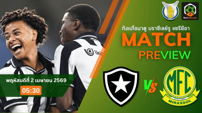 ศึกบราซิล ซีรีส์ เอ เช้าวันพฤหัสบดีที่ 2 เมษายน 2569 เวลา 05:30 น. เกมนี้โบตาโฟโก้ อันดับ 17 เปิดสนามเอสตาดิโอ โอลิมปิโก้ นิลตัน ซานโตส รับมือมิราสโซล อันดับ 18 ในแมตช์ที่ทั้งสองฝ่ายต่างต้องการแต้มอย่างหนักเพื่อขยับหนีโซนอันตรายของตาราง คะแนนและความมั่นใจคือสิ่งที่ทั้งคู่กำลังตามหา ขณะที่ราคาบอลวันนี้เปิดให้โบตาโฟโก้ต่อ ปป ซึ่งสะท้อนชัดว่าเจ้าถิ่นอาจได้เปรียบจากการเล่นในบ้าน แต่ภาพรวมของฟอร์มยังไม่ได้หนีกันมากนัก ใครที่กำลังไล่เช็ก ตารางบอลวันนี้ บอกเลยว่าคู่นี้แม้ไม่ใช่เกมใหญ่ของชื่อชั้น แต่มีความเดือดในแง่สถานการณ์ไม่แพ้คู่ไหนเลย