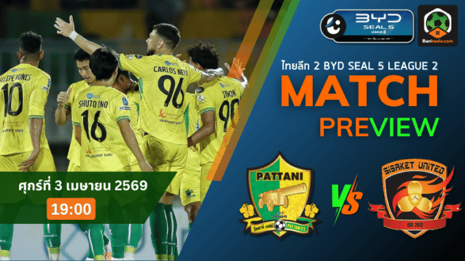ศึก BYD SEAL 5 ลีกสอง วันศุกร์ที่ 3 เมษายน 2569 เวลา 19:00 น. ปัตตานี เอฟซี เตรียมเปิดบ้านรับมือ ศรีสะเกษ ยูไนเต็ด ในเกมที่มีน้ำหนักต่อการลุ้นหัวตารางแบบเต็มตัว แม้ ราคาบอลวันนี้ ยังรอการเปิดอย่างเป็นทางการ แต่บรรยากาศของเกมนี้ถือว่าร้อนแรงไม่น้อย เพราะเจ้าถิ่นรั้งอันดับ 3 จากผลงาน 10 นัด ชนะ 6 เสมอ 2 แพ้ 2 ยิงได้ 19 เสีย 13 ส่วนทีมเยือนอยู่อันดับ 2 ชนะ 5 เสมอ 3 แพ้ 2 ยิงได้ 14 เสีย 10 นี่จึงเป็นอีกคู่ที่แฟนบอลเช็ก ตารางบอลวันนี้ แล้วต้องหยุดมองทันที