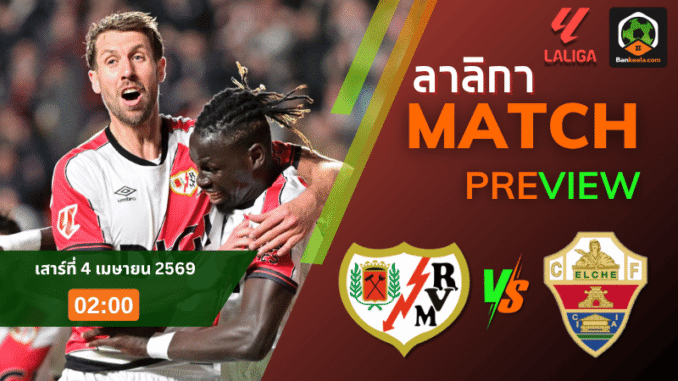 ศึก ลาลีกา สเปน คืนวันเสาร์ที่ 4 เมษายน 2569 เวลา 02:00 น. ราโย บาเยกาโน่ อันดับ 14 เปิดสนามกัมโป เด ฟุตบอล เด บาเยกาส รับมือเอลเช่ อันดับ 17 ในเกมที่กดดันทั้งสองฝ่ายเต็ม ๆ เพราะแต้มในช่วงท้ายซีซันมีความหมายทุกเม็ด เจ้าถิ่นยังพอมีจุดแข็งให้ยึดเกาะจากผลงานในบ้านที่เหนียวแน่น ขณะที่ทีมเยือนยังมีบาดแผลชัดเจนเวลาออกไปเล่นนอกถิ่น โดยเรตราคาเปิดมาให้ราโยต่อ 0.75 สะท้อนว่าฝั่งเจ้าบ้านยังถูกมองว่ามีภาษีมากกว่า และสำหรับคอบอลที่ไล่เช็ก ตารางบอลวันนี้ คู่นี้ถือว่าเป็นอีกแมตช์ที่มองข้ามไม่ได้เลย