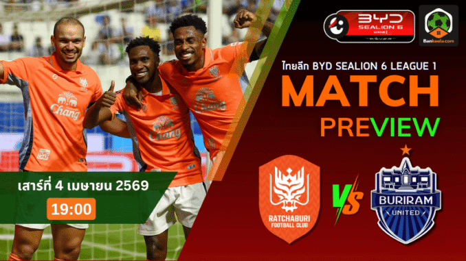ศึก BYD SEALION 6 ลีกหนึ่ง วันเสาร์ที่ 4 เมษายน 2569 เวลา 19:00 น. คู่นี้ถือว่าเดือดตั้งแต่ยังไม่เขี่ยบอล เมื่อ ราชบุรี เอฟซี เปิดบ้านรับการมาเยือนของ บุรีรัมย์ ยูไนเต็ด ทีมจ่าฝูงที่กำลังมั่นใจสุดขีด ราคาบอลวันนี้เปิดให้ทีมเยือนต่อ 0.5/1 สะท้อนให้เห็นชัดว่าภาพรวมยังเอนไปทางปราสาทสายฟ้า แต่ราชบุรีเองก็ไม่ใช่งานง่าย โดยเฉพาะเมื่อได้เล่นต่อหน้าแฟนบอลตัวเอง เกมนี้จึงเป็นอีกคู่สำคัญใน ตารางบอลวันนี้ ที่มีทั้งเดิมพันเรื่องอันดับและศักดิ์ศรีเต็มพิกัด