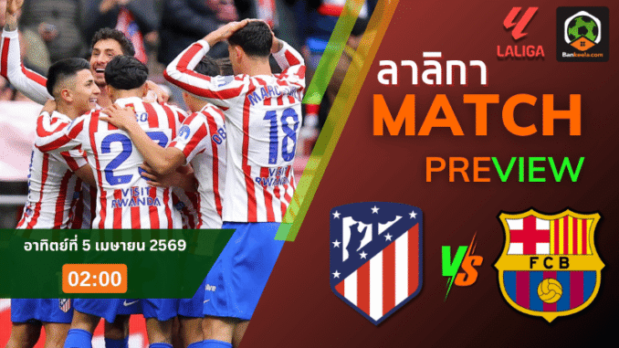 ศึกลาลีกาคืนวันอาทิตย์ที่ 5 เมษายน 2569 เวลา 02:00 น. เป็นอีกหนึ่งเกมที่แฟนบอลต้องจับตา เมื่อ แอตเลติโก้ มาดริด เปิดบ้านรับการมาเยือนของจ่าฝูง บาร์เซโลน่า ที่สนามริยาดห์ แอร์ เมโทรโปลิตาโน่ เกมนี้มีความหมายมากกว่าสามแต้ม เพราะเจ้าถิ่นต้องการหยุดแรงของทีมเยือน ขณะที่บาร์ซ่าหวังย้ำความเหนือชั้นบนเส้นทางลุ้นแชมป์ ใครที่กำลังไล่ดู ตารางบอลวันนี้ ต้องยอมรับว่านี่คือคู่เอกที่มีทั้งความเดือด คุณภาพ และแรงกดดันครบทุกด้าน