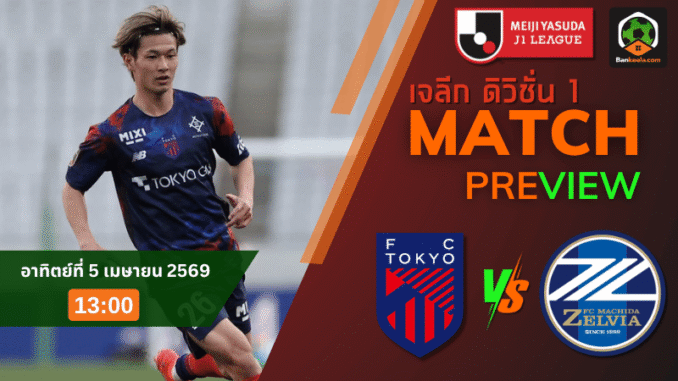 ศึกเจลีก ญี่ปุ่น วันอาทิตย์ที่ 5 เมษายน 2569 เวลา 13:00 น. เกมที่แฟนบอลต้องห้ามพลาดคือการดวลกันระหว่าง เอฟซี โตเกียว เปิดบ้านรับมือ มาชิดะ เซลเวีย สองทีมหัวแถวที่กำลังลุ้นพื้นที่บนตารางแบบเข้มข้น เรต ราคาบอลวันนี้ เปิดให้เจ้าถิ่นต่อ 0/0.5 สะท้อนว่าเกมนี้สูสีแต่ยังให้เครดิตฝั่งโตเกียวมากกว่าเล็กน้อย โดยเฉพาะกับผลงานในบ้านที่ยังแข็งแกร่ง สำหรับใครที่กำลังไล่เช็ก ตารางบอลวันนี้ นี่คือคู่ที่มีโอกาสออกได้ทุกหน้าและพร้อมเดือดตั้งแต่นาทีแรก