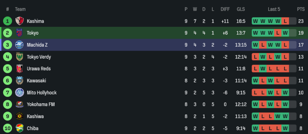 เอฟซี โตเกียว ของกุนซือ ริคิโซะ มัตสึฮาชิ เตรียมลงสนามในระบบ 4-4-2 ที่เน้นความแน่นและการเปลี่ยนจังหวะเร็ว ผู้เล่นหลักตามแผนที่เห็นมี ทานากะ ยืนเฝ้าเสา แนวรับใช้ มุโรยะ, โชลซ์, ฮาชิโมโตะ และ ยามาดะ แดนกลางมี อินามูระ, โทคิวะ, นากางาวะ และ ซาโตะ ช่วยกันคุมจังหวะ ส่วนคู่หน้าเป็น เอ็นโดะ กับ ฮาชิโมโตะ ที่พร้อมกดดันแนวรับคู่แข่งทันที เจ้าถิ่นลงเล่น 10 นัดในลีก ชนะ 4 เสมอ 5 แพ้ 1 ยิง 13 เสีย 13 และผลงานในบ้านยังเป็นจุดขายสำคัญของพวกเขา