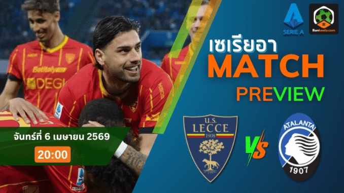 คืนวันจันทร์ที่ 6 เมษายน 2569 เวลา 20:00 น. ศึกกัลโช่ เซเรีย อา คู่นี้มีความหมายเกินกว่า 3 แต้มธรรมดา เมื่อเลชเช่ ทีมที่กำลังหนีตาย เปิดบ้านรับมืออตาลันต้า ทีมที่ยังไล่ล่าพื้นที่ยุโรปแบบไม่ยอมปล่อยมือ เกมนี้จึงเต็มไปด้วยแรงกดดันทั้งสองฝั่ง และน่าจับตาอย่างมากใน ตารางบอลวันนี้ ขณะที่ราคาบอลวันนี้เปิดให้อาคันตุกะต่อ 0.5/1 สะท้อนชัดว่าภาพรวมยังเป็นฝั่งทีมเยือนที่ดูเหนือกว่า ทั้งคุณภาพทีม ความแน่นอน และอาวุธในเกมรุก