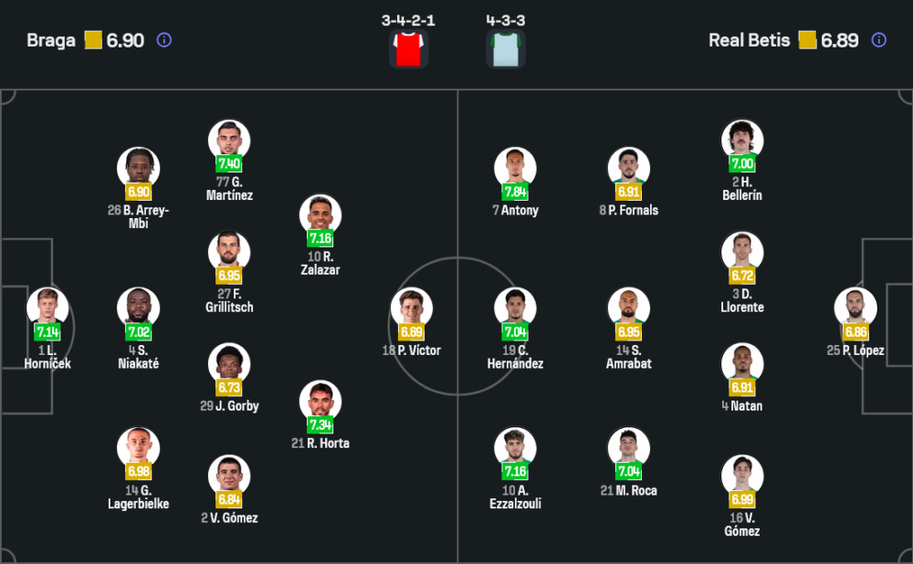 ส่วนเบติสมีทีเด็ดจากคุณภาพผู้เล่นเกมรุก โดยเฉพาะ อันโตนี่ และ เอซซัลซูลี่ แต่ปัญหาคือการเข้าทำนอกบ้านยังไม่คมอย่างที่ควร ยิ่งต้องมาเจอกับบราก้าที่เล่นดุดันในรังตัวเอง โอกาสที่ทีมเยือนจะโดนกดจังหวะจนเสียทรงมีไม่น้อย เกมนี้จึงน่าจะตึงมือทั้งสองฝั่ง แต่ภาพรวมยังเชื่อว่าเจ้าบ้านมีลุ้นเบียดชนะมากกว่า