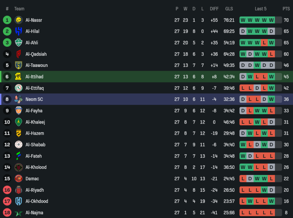 นีออมก็เพิ่งกลับมาชนะได้เช่นกัน หลังเปิดบ้านเชือด อัล ไฟฮา 1-0 หยุดสถิติไม่ชนะ 4 นัดติดได้สำเร็จ ภาพรวมอาจยังไม่สม่ำเสมอ แต่พวกเขาเป็นทีมที่เล่นด้วยวินัยและมีจังหวะสวนกลับที่น่ากลัว ยิ่งในเกมที่ไม่ถูกกดดันให้ต้องเปิดหน้าแลกมากเกินไป ยิ่งเล่นได้ถนัด