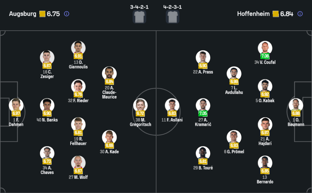 ฝั่งฮอฟเฟ่นไฮม์ของ คริสเตียน อิลเซอร์ แม้ผลงานพักหลังน่าผิดหวัง แต่ขุมกำลังโดยรวมยังดูแน่นกว่า เกมนี้จะขาด เว้าเตอร์ เบอร์เกอร์ ที่ติดโทษแบน ส่วนตัวเจ็บยังมี อดัม ฮโลเซ็ค และบางรายที่ไม่พร้อมเต็มร้อย แต่แกนหลักหลายคนยังอยู่กันครบ โดยเฉพาะแนวรุกที่ยังมี อังเดร ครามาริช, ฟิสนิค อัสลานี่ และเลออน อัฟดูลลาฮู คอยปั้นเกม คาดว่าจะยืนมาในระบบ 4-2-3-1 หรือปรับเป็น 4-3-1-2 ตามจังหวะ โดยมี โอลิเวอร์ เบามันน์ เฝ้าเสา และแนวรับนำโดย คูฟาล, คาบัค, ฮัจดารี่ และ แบร์นาโด้
