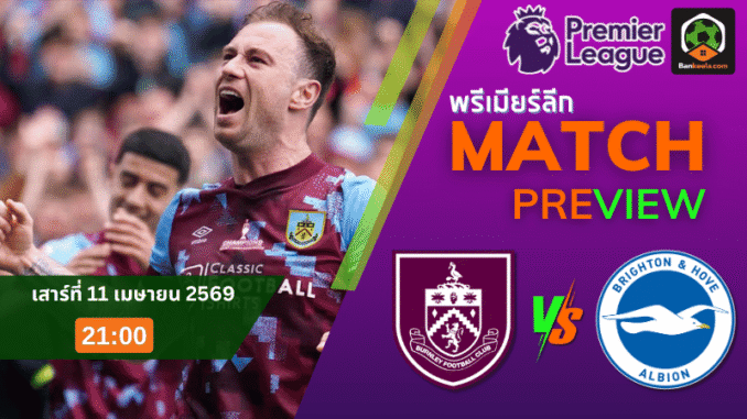 ศึกพรีเมียร์ลีก อังกฤษ คืนวันเสาร์ที่ 11 เมษายน 2569 เวลา 21:00 น. เบิร์นลีย์ ทีมอันดับ 19 เปิดบ้านรับมือไบรท์ตัน อันดับ 10 ที่กำลังเร่งเครื่องเก็บแต้มช่วงท้ายฤดูกาล เกมนี้มีน้ำหนักมากสำหรับเจ้าถิ่นที่ต้องดิ้นหนีตกชั้น ขณะที่ทีมเยือนเองก็ต้องการรักษาโมเมนตัมจากผลงานที่เริ่มเข้าฝัก สำหรับ ตารางบอลวันนี้ คู่นี้ถือว่าน่าจับตาไม่น้อย เพราะนอกจากสถานการณ์บนตารางแล้ว ราคาบอลวันนี้ยังเปิดให้ไบรท์ตันต่อ 0.75(-10) สะท้อนชัดว่าภาพรวมของทีมเยือนดูดีกว่า ทั้งเรื่องฟอร์ม ความมั่นใจ และจังหวะการเล่นในช่วงหลัง