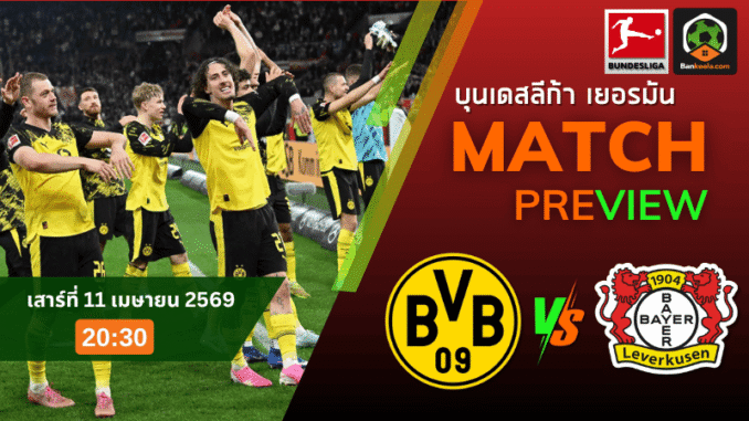 ศึกบุนเดสลีกาคืนวันเสาร์ที่ 11 เมษายน 2569 เวลา 20:30 น. โบรุสเซีย ดอร์ทมุนด์ เปิดรัง ซิกนัล อิดูน่า พาร์ค รับการมาเยือนของ ไบเออร์ เลเวอร์คูเซ่น เกมนี้ถือเป็นหนึ่งในคู่เอกของสัปดาห์ เพราะทั้งสองทีมต่างอยู่ในกลุ่มหัวตารางและมีคุณภาพพอจะเล่นงานกันได้ทุกจังหวะ เจ้าถิ่นกำลังมั่นใจหลังชนะในลีกมา 4 นัดติด ส่วนทีมเยือนเพิ่งเรียกความฮึกเหิมกลับมาจากชัยชนะนัดล่าสุด ทำให้แมตช์นี้น่าจับตาอย่างยิ่งสำหรับแฟนบอลที่กำลังเช็ก ตารางบอลวันนี้ และมองหาเกมใหญ่ที่มีทั้งความเข้มข้นและโอกาสลุ้นสกอร์กันสนุก โดยราคาบอลวันนี้เปิดให้ดอร์ทมุนด์ต่อ 0.5 สะท้อนชัดว่าเจ้าบ้านยังถูกมองว่าเหนือกว่าเล็กน้อยจากฟอร์มและเสียงเชียร์ในถิ่นตัวเอง