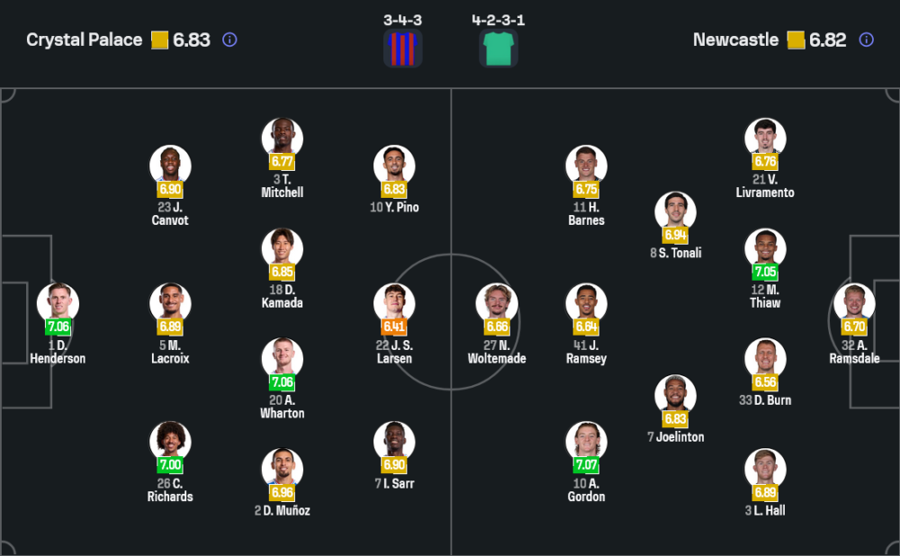 โอลิเวอร์ กลาสเนอร์ น่าจะจัดทีมในระบบ 3-4-2-1 หรือขยับเป็น 3-4-3 ตามจังหวะเกม โดยมี ดีน เฮนเดอร์สัน เฝ้าเสา แนวรับนำโดย คริส ริชาร์ดส์, มักซ็องซ์ ลาครัวซ์ และ เจย์ดี ก็องโวต์ ด้านวิงแบ็กใช้ ดาเนียล มูนญอซ กับ ไทริค มิตเชลล์ คอยเติมเกม ส่วนแดนกลางมี อดัม วาร์ตัน กับ ไดจิ คามาดะ ขับเคลื่อนเกม ขณะที่แนวรุกวาง อิสไมล่า ซาร์, เยเรมี่ ปิโน่ และ ฌ็อง-ฟิลิปเป้ มาเตต้า เป็นตัวทีเด็ด ข่าวร้ายคือยังไม่มี เอ็ดเวิร์ด เอ็นเคเตียห์ และต้องลุ้นความฟิตของบางราย แต่ภาพรวมยังถือว่าพร้อมสู้เต็มที่