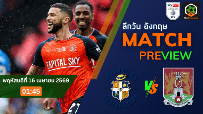 ศึกลีก วัน อังกฤษ คืนวันพฤหัสบดีที่ 16 เมษายน 2569 เวลา 01:45 น. ลูตัน ทาวน์ ทีมอันดับ 10 เปิดบ้านรับมือ นอร์ทแฮมป์ตัน ทีมอันดับ 23 ในเกมที่ความพร้อมและโมเมนตัมต่างกันชัดเจน เจ้าถิ่นกำลังอยู่ในช่วงมั่นใจ ผลงานกำลังไหลลื่น ขณะที่ทีมเยือนอาการหนักต่อเนื่องและจมอยู่โซนท้ายตาราง เกมนี้จึงเป็นอีกคู่ที่น่าสนใจบน ตารางบอลวันนี้ เพราะมีผลต่อทั้งการลุ้นขยับอันดับและการหนีตกชั้นโดยตรง ส่วนราคาบอลเปิดให้ลูตันต่อ 1.25 ก็สะท้อนชัดว่าฝั่งเจ้าบ้านถูกยกให้เหนือกว่าพอสมควร