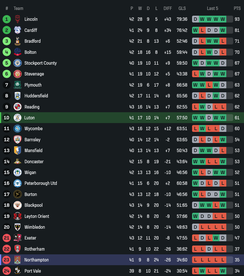 ลูตันเดือดจัดพร้อมขยี้นอร์ทแฮมป์ตันคาเคนนิลเวิร์ธ โร้ด เกมนี้เจ้าถิ่นมีสิทธิ์ไล่ยิงขาด