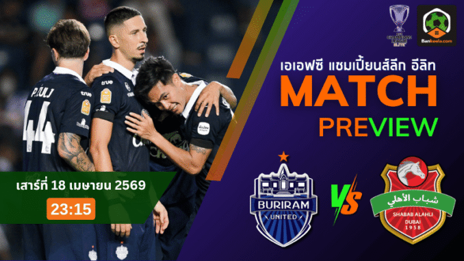 ศึก เอเอฟซี แชมเปี้ยนส์ ลีก อีลิท คืนวันเสาร์ที่ 18 เมษายน 2569 เวลา 23:15 น. เป็นอีกเกมที่แฟนบอลไทยต้องจับตา เมื่อ บุรีรัมย์ ยูไนเต็ด เปิดบ้านรับมือ ชาบาบ อัล อาห์ลี ทีมแกร่งจากยูเออี ในแมตช์ที่เต็มไปด้วยแรงกดดันและความหมายต่อเส้นทางบนเวทีเอเชีย ราคาบอลวันนี้เปิดมาที่ 1 บ่งบอกชัดว่าเกมนี้ไม่ง่ายสำหรับทั้งสองฝ่าย และสำหรับคอบอลที่กำลังเช็ก ตารางบอลวันนี้ นี่คือคู่ที่มีครบทั้งความเข้มข้น คุณภาพนักเตะ และโอกาสลุ้นกันยาวถึงนาทีสุดท้าย