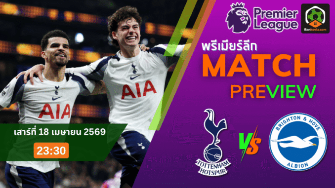 ค่ำคืนวันเสาร์ที่ 18 เมษายน 2569 เวลา 23.30 น. สเปอร์ส ทีมอันดับ 18 เตรียมเปิดรังท็อตแน่ม ฮ็อตสเปอร์ สเตเดี้ยม รับการมาเยือนของไบรท์ตัน ทีมอันดับ 9 ในเกมพรีเมียร์ลีกที่แรงกดดันตกอยู่กับเจ้าถิ่นเต็มๆ เพราะสถานการณ์ในลีกของพวกเขาเริ่มน่าเป็นห่วงแบบปฏิเสธไม่ได้ ขณะที่ทีมเยือนกำลังเล่นด้วยความมั่นใจและมีทรงบอลที่แน่นกว่าอย่างชัดเจน