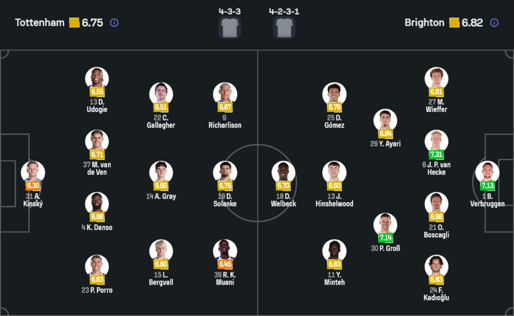 แนวรุกยังต้องฝากความหวังไว้กับ โดมินิก โซลันเก้ โดยมี ริชาร์ลิซอน และคอเนอร์ กัลลาเกอร์ ช่วยสนับสนุน ส่วนแดนกลางใช้ อาร์ชี่ เกรย์, ลูคัส เบิร์กวัลล์ และร็องดาล โคโล่ มูอานี่ ขณะที่แผงหลังนำโดย เปโดร ปอร์โร่, เควิน ดานโซ่, มิคกี้ ฟาน เดอ เฟ่น และเดสตินี่ อูโดกี้ กับ อันโตนิน คินสกี้ เฝ้าเสา ภาพรวมยังดูเป็นทีมที่ต้องประคองตัวเองตลอดทั้งเกม