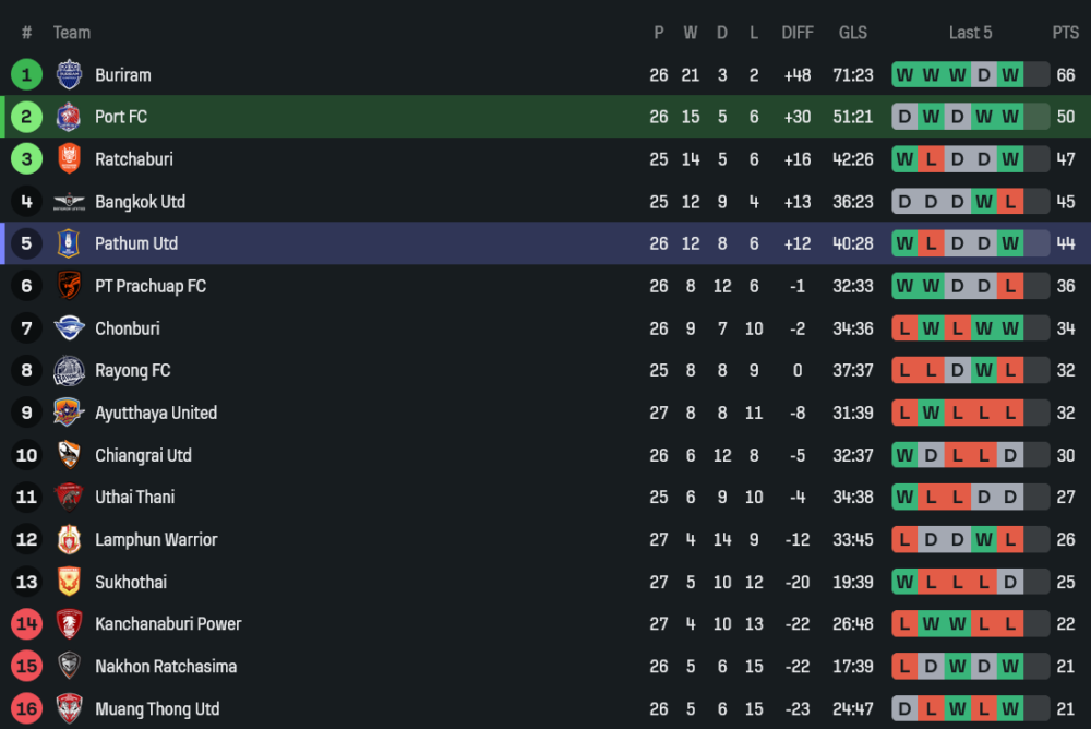 - สกอร์ที่คาด: การท่าเรือ เอฟซี 1-1 บีจี ปทุม ยูไนเต็ด