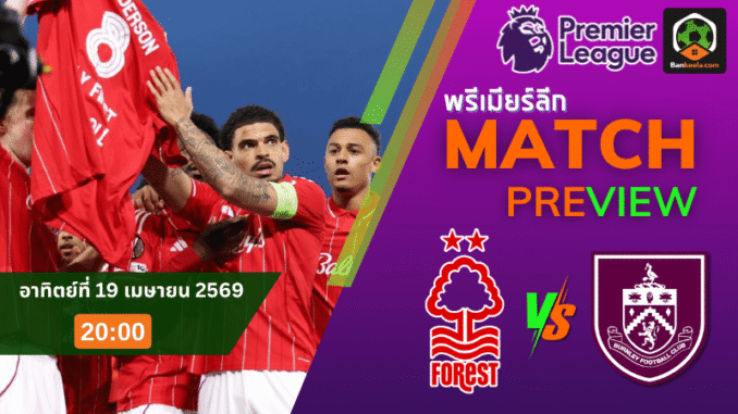 ศึกพรีเมียร์ลีก อังกฤษ คืนวันอาทิตย์ที่ 19 เมษายน 2569 เวลา 20:00 น. ที่ซิตี้ กราวน์ด เป็นเกมที่ทั้งสองทีมไม่มีพื้นที่ให้พลาดอีกแล้ว น็อตติ้งแฮม ฟอเรสต์ อันดับ 16 ต้องเปิดบ้านรับมือ เบิร์นลีย์ อันดับ 19 ในแมตช์หนีตายที่แรงกดดันสูงตั้งแต่นาทีแรก เจ้าถิ่นได้เปรียบเรื่องเสียงเชียร์และผลงานระยะหลังที่ดูดีกว่า แต่ก็เพิ่งผ่านเกมหนักมาไม่นาน ส่วนทีมเยือนแม้ฟอร์มจะน่าห่วง ทว่านัดแบบนี้เรื่องใจล้วนมีผลโดยตรง สำหรับคู่นี้ใน ตารางบอลวันนี้ ถือเป็นเกมที่น่าจับตาอย่างมาก โดยราคาบอลเปิดให้ฟอเรสต์ต่อ 1.0